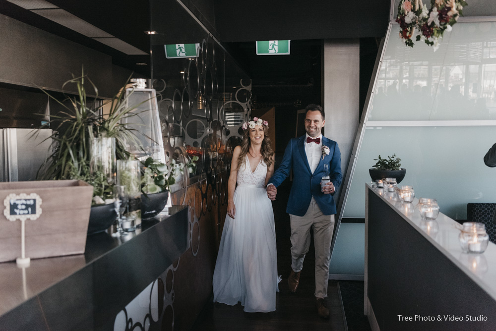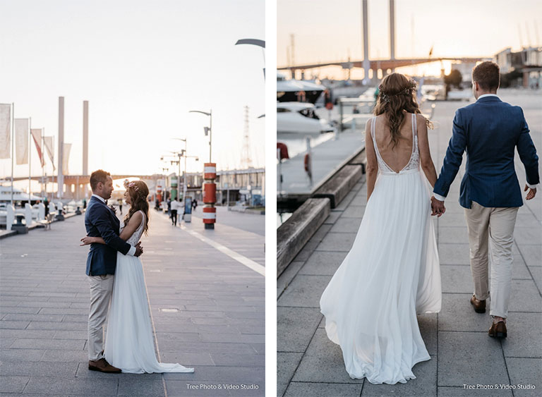 Right before the reception, we also took some quick shots at the harbour. As the sun went down, the colourful lights lit up the Bolte bridge, making it a perfect backdrop for photos alongside with the Yarra river. The reception went smoothly, we had lots of fun capturing the couple’s first dance, the reaction from the guests were GOLD.
