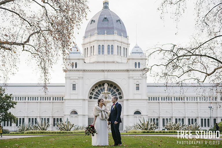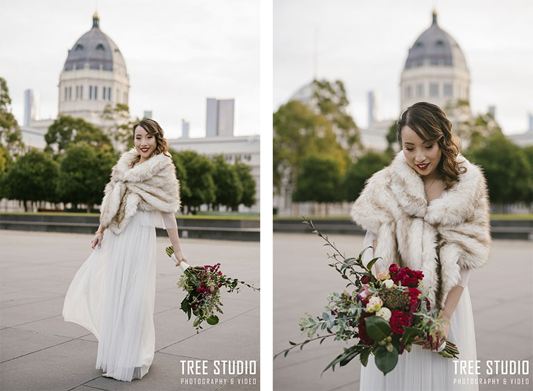 The Carlton Garden is an ideal place for wedding photography: not only it’s filled with lots of greenery and trees, you can also find several architectures with very distinctive styles. We first started doing some photos at the famous central lawn and then moved to the fountain for some portraits. And lastly, we had lots of fun doing wedding photography at the front of the Melbourne Museum.